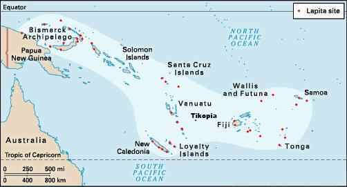 even found at Nihoa island in Hawaii. Lapita remnants found near