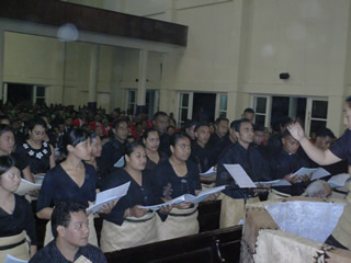 played at a very loud volume. To me this drowns out the choir. The Tongan schools,