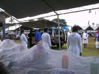 Wesleyan church in Ha'apai at the time. We are waiting for the arrival of a special guest.