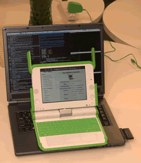 software piracy. The XO, as the little green laptop is called, runs Open